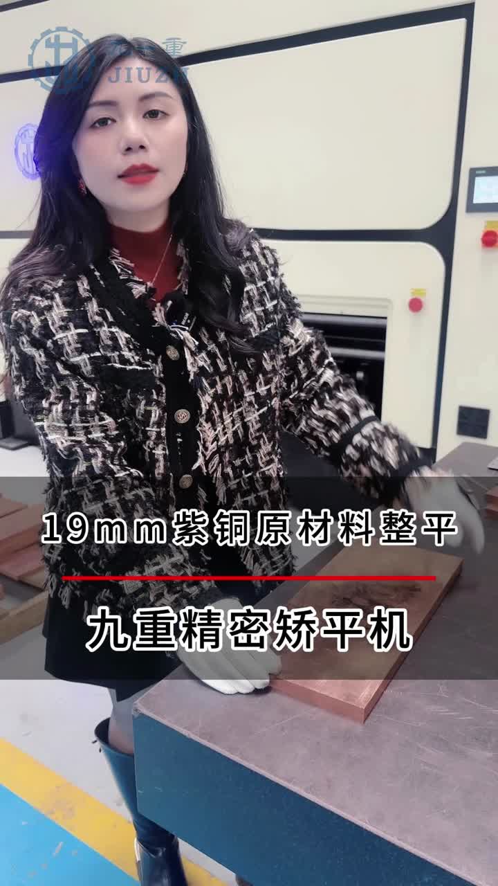 Este video presenta el nivelador de rodillos de precisión Jiuzh procesando una placa bruta de cobre púrpura de 19 mm de espesor. La máquina elimina eficazmente la tensión interna y logra una planitud superior, asegurando que el cobre mantenga su excelente conductividad y calidad de superficie. Utilizando el avanzado sistema de control servohidráulico de Jiuzh, el proceso de nivelación permanece estable y altamente preciso. Este caso demuestra la capacidad de Jiuzh para manejar materiales de cobre gruesos y de alta conductividad, ofreciendo soluciones confiables para aplicaciones de fabricación industrial y electrónica.